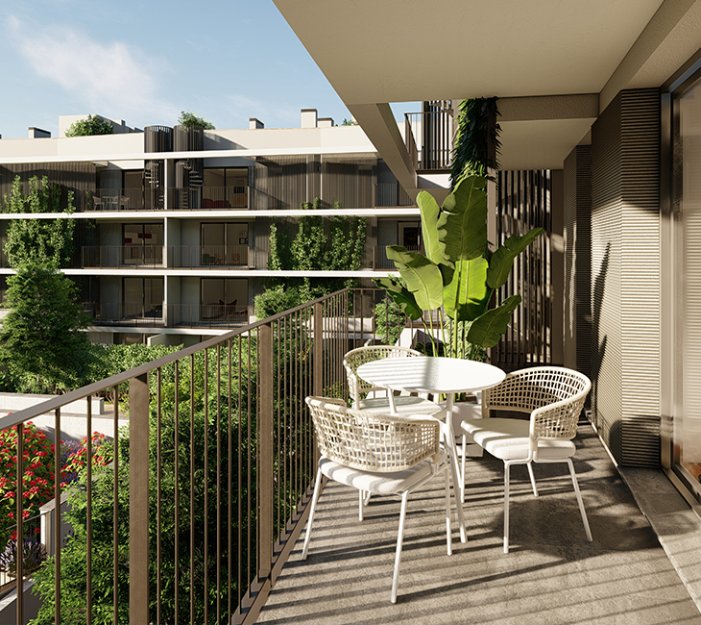 Exclusive residential located in the area Son Guells, consisting of 85 apartments and penthouses of 2 and 3 bedrooms with parking spaces and storage rooms. In addition, the urbanization has with pool, gym, clubhouse, playground, community room, and bicycle parking.