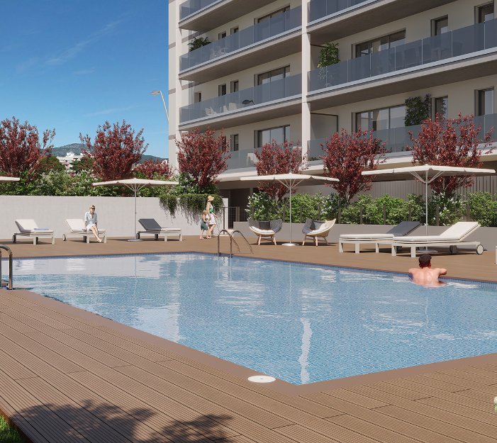 Discover Patmos, a new construction development located in Illa Nova, Vilanova i la Geltrú consisting of 71 homes with 2, 3 and 4 bedrooms in Barri del Mar, a few minutes from the beach and the port. It has a swimming pool for adults and children, parking for bicycles and a children's area.
