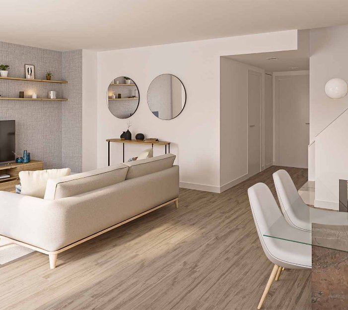 In addition, they have a garden, private parking for two vehicles and a rooftop solarium, making the most of the outdoor areas. In terms of energy efficiency, Caelia III stands out for having underfloor heating-cooling and aerothermal energy as well as photovoltaic panels.