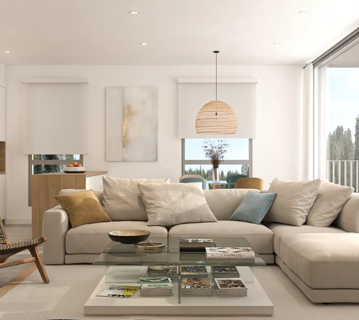 Las viviendas de están diseñadas con todo lujo de detalles y acabados para vivir la vida en su mejor versión: cocina amueblada con electrodomésticos de primeras marcas, carpintería exterior con perfil de PVC, acristalamiento tipo Climalit, vidrios de seguridad tipo Stadip, sistema de climatización mediante aerotermia, etc.