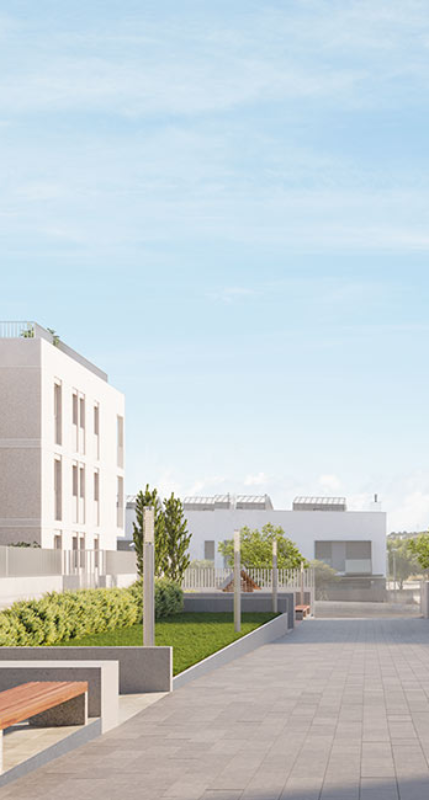 Descubre Kassia, promoción de pisos con amplias terrazas. Plantas bajas con terraza ajardinada y áticos con terrazas privativas en cubierta.